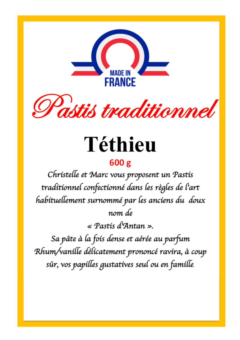 Le Pastis de Téthieu se laisse manger tel quel ou se marie parfaitement avec une crème anglaise.